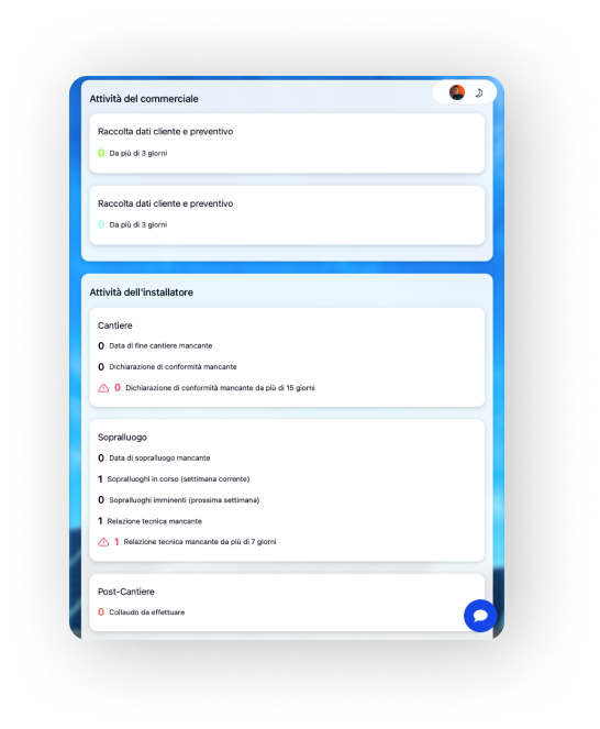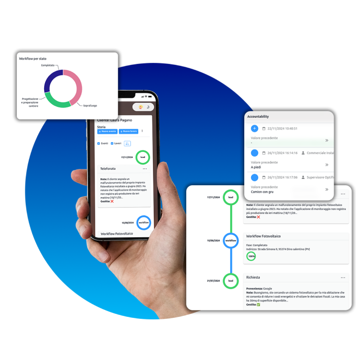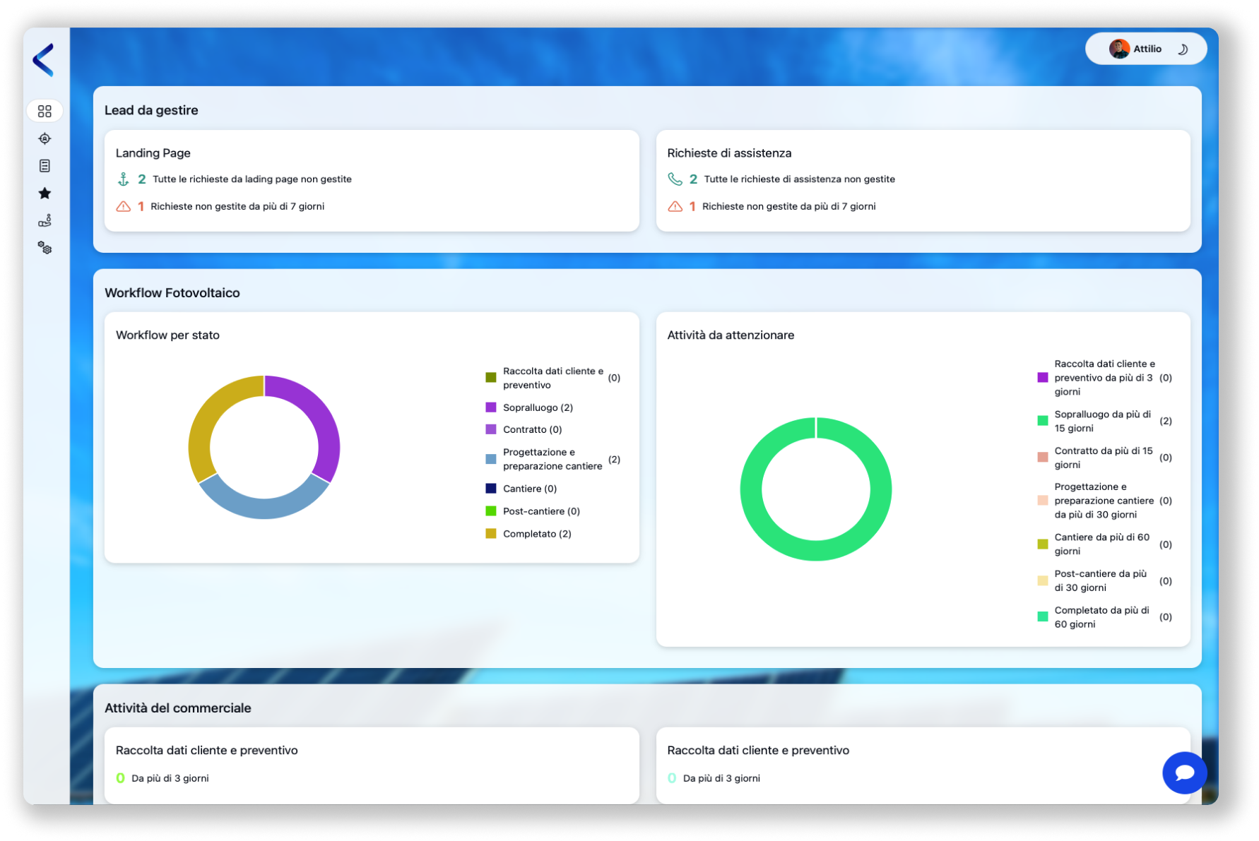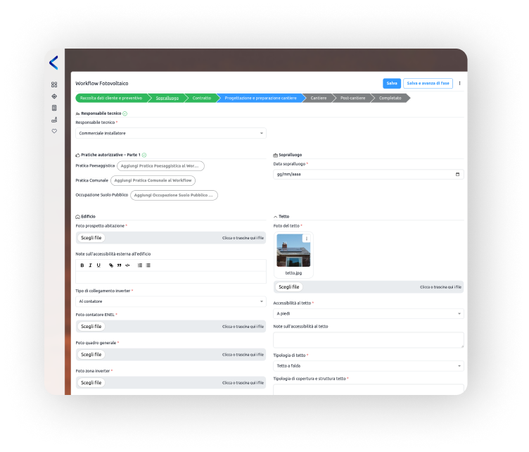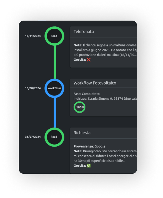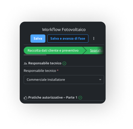 Un CRM e gestore di processi per il fotovoltaico, progettato per gestire il workflow aziendale.